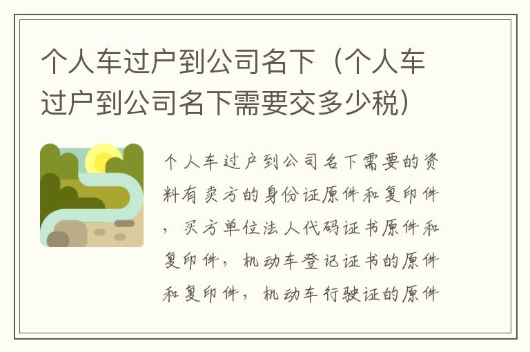 个人车过户到公司名下(个人车过户到公司名下需要交多少税)