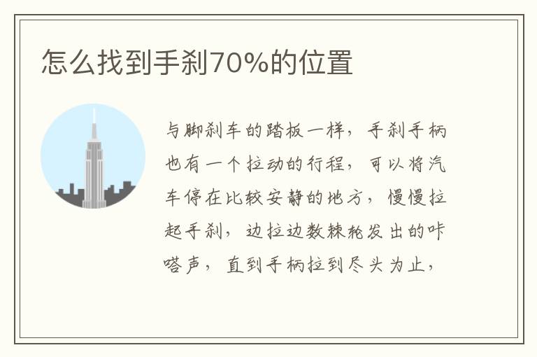 与脚刹车的踏板一样,手刹手柄也有一个拉动的行程,可以将汽车停在比较安静的地方,慢慢拉起手刹,边拉边数棘轮发出的咔嗒声,直到手柄拉到尽头为止,然后算出响声总数的70%位置,这个位置就是手刹手柄的有效工作点。