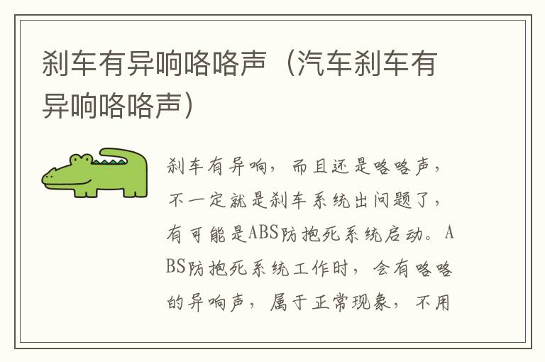 刹车有异响,而且还是咯咯声,不一定就是刹车系统出问题了,有可能是ABS防抱死系统启动。