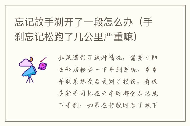 如果只是没有放下手刹开了一小段距离,那是不要紧的。如果开了很长的路都没有放下手刹,那建议车友们去检查一下。