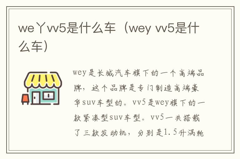wey是长城汽车旗下的一个高端品牌,这个品牌是专门制造高端豪华suv车型的。vv5是wey旗下的一款紧凑型suv车型。