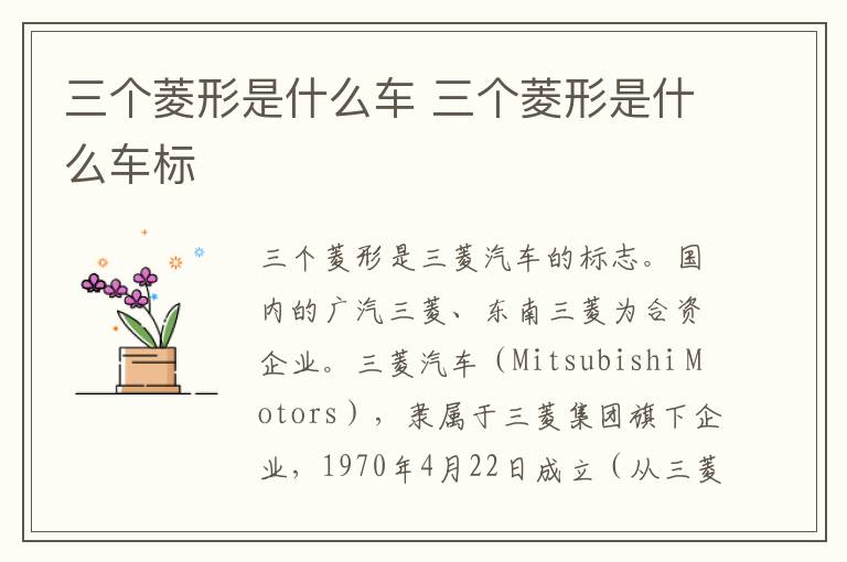 三个菱形是三菱汽车的标志。国内的广汽三菱、东南三菱为合资企业。