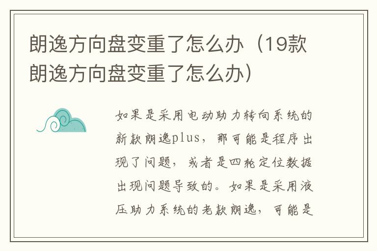 如果是采用电动助力转向系统的新款朗逸plus,那可能是程序出现了问题,或者是四轮定位数据出现问题导致的。如果是采用液压助力系统的老款朗逸,可能是转向助力油需要更换了,可能是转向助力泵皮带出现了问题导致的。