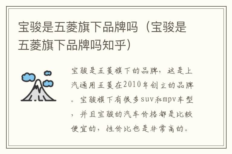 宝骏是五菱旗下的品牌,这是上汽通用五菱在2010年创立的品牌。宝骏旗下有很多suv和mpv车型,并且宝骏的汽车价格都是比较便宜的,性价比也是非常高的。宝骏旗下销量比较好的车型是宝骏730,这是一款mpv。
