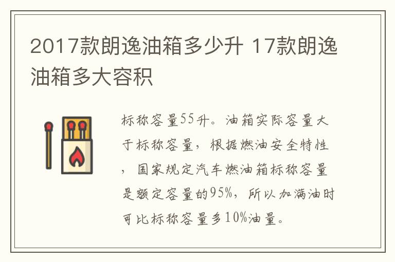 标称容量55升。油箱实际容量大于标称容量,根据燃油安全特性,国家规定汽车燃油箱标称容量是额定容量的95%,所以加满油时可比标称容量多10%油量。