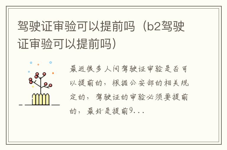 最近很多人问驾驶证审验是否可以提前的,根据公安部的相关规定的,驾驶证的审验必须要提前的,最好是提前90天的,当然实在忘记或者没有时间的话也应该是在过期后一年内,下面就由小编带大家一起去了解一下驾驶证的审验流程以及所需携带的材料。