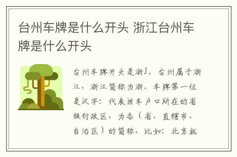 台州车牌开头是浙J。台州属于浙江,浙江简称为浙。
