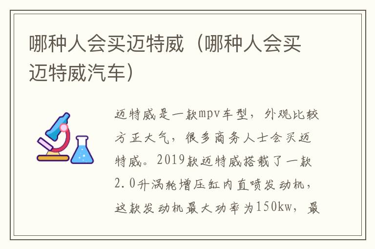 迈特威是一款7座mpv车型,车内空间较大,舒适性较高,适合长途旅行和一些商务接待。所以商务人士购买迈特威的比较多。
