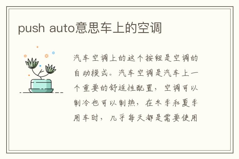 汽车空调上的这个按钮是空调的自动模式。汽车空调是汽车上一个重要的舒适性配置,空调可以制冷也可以制热,在冬季和夏季用车时,几乎每天都是需要使用空调的。汽车空调的工作原理也是很简单的。