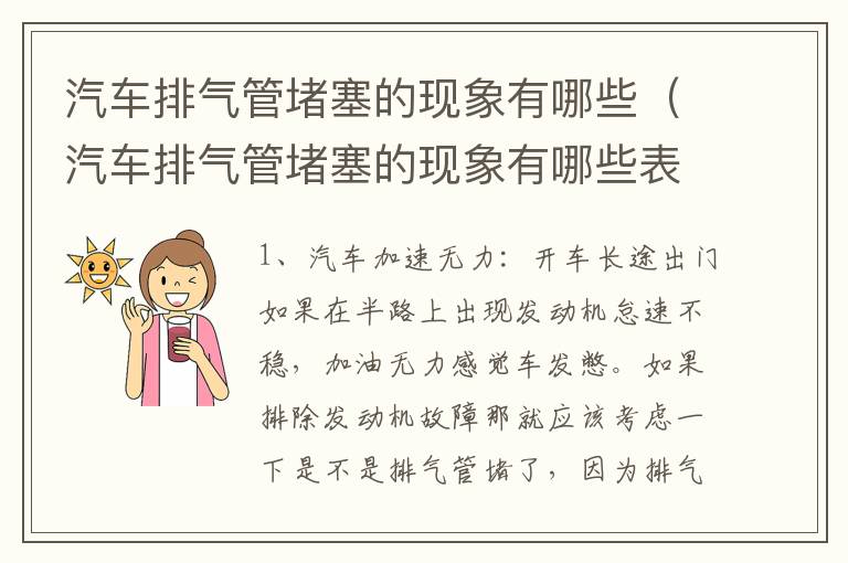 开车长途出门如果在半路上出现发动机怠速不稳,加油无力感觉车发憋。如果排除发动机故障那就应该考虑一下是不是排气管堵了,因为排气不畅致使进气量变少,发动机功率下降。