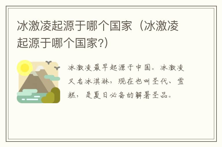 冰激凌又名冰淇淋,最早起源于中国。早在元朝的时候,一位食品店商人往冰里加入了蜜糖、牛奶和珍珠粉,制作出了最早的冰激凌。