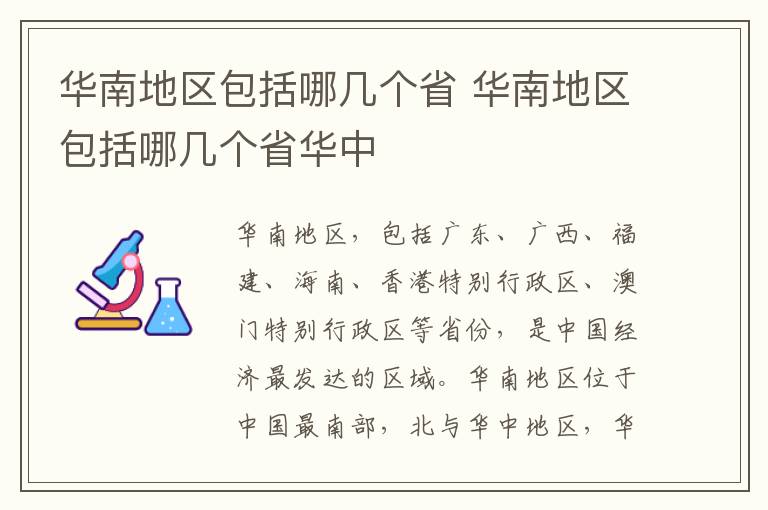 华南地区,包括广东、广西、福建、海南、香港特别行政区、澳门特别行政区等省份,是中国经济最发达的区域。华南地区位于中国最南部,北与华中地区,华东地区相接,南面包括辽阔的南海和南海诸岛。