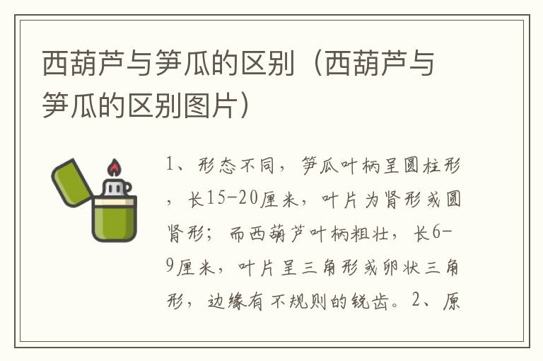 1、形态不同,笋瓜叶柄呈圆柱形,长15-20厘米,叶片为肾形或圆肾形;而西葫芦叶柄粗壮,长6-9厘米,叶片呈三角形或卵状三角形,边缘有不规则的锐齿。2、原产地不同,西葫芦原产北美洲南部,而笋瓜起源于南美洲的玻利维亚、智利及阿根廷等国。3、品种分类不同,西葫芦分为花叶西葫芦、无种皮西葫芦、绿皮西葫芦、长蔓西葫芦;而笋瓜依皮色分为白皮、黄皮及花皮,按大小分为大笋瓜及小笋瓜。