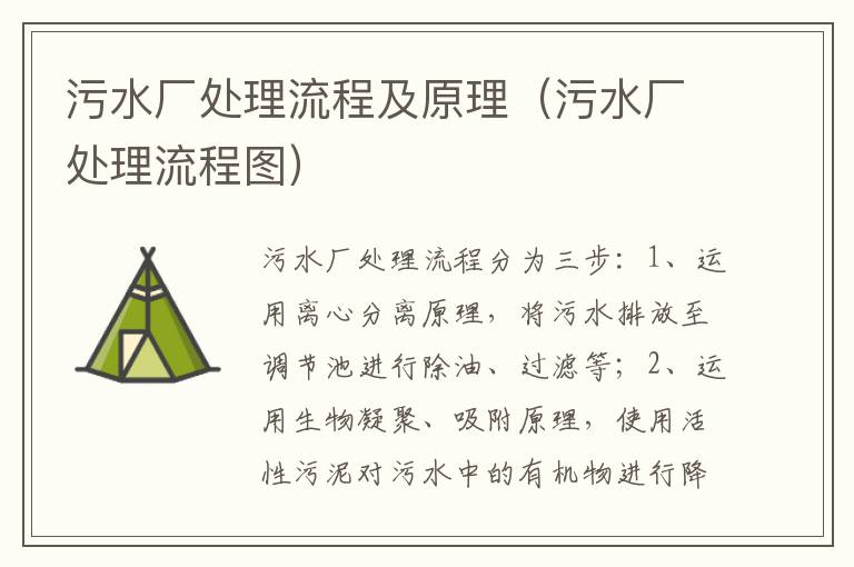 污水厂处理流程分为三步:1、运用离心分离原理,将污水排放至调节池进行除油、过滤等;2、运用生物凝聚、吸附原理,使用活性污泥对污水中的有机物进行降解;3、运用离子交换原理,使用微滤、反渗透、电渗析、离子交换的方法对污水的有害物质进行生物降解。达到排放标准的污水可直接对外排放。