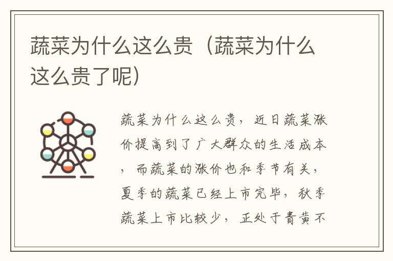 蔬菜为什么这么贵,近日蔬菜涨价提高到了广大群众的生活成本,而蔬菜的涨价也和季节有关,夏季的蔬菜已经上市完毕,秋季蔬菜上市比较少,正处于青黄不接的时候,以及蔬菜主要产地被雨水淹后大量减产,市场供应减少,菜价随之上涨。
