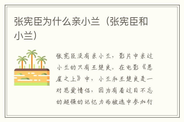 张宪臣没有亲小兰,影片中亲过小兰的只有王楚良。在电影《悬崖之上》中,小兰和王楚良是一对恩爱情侣,因为有着过目不忘的超强的记忆力而被选中参加行动。入境后和张宪臣一组行动,张宪臣被捕后,她在和周乙接上头后成功完成了乌特拉行动。