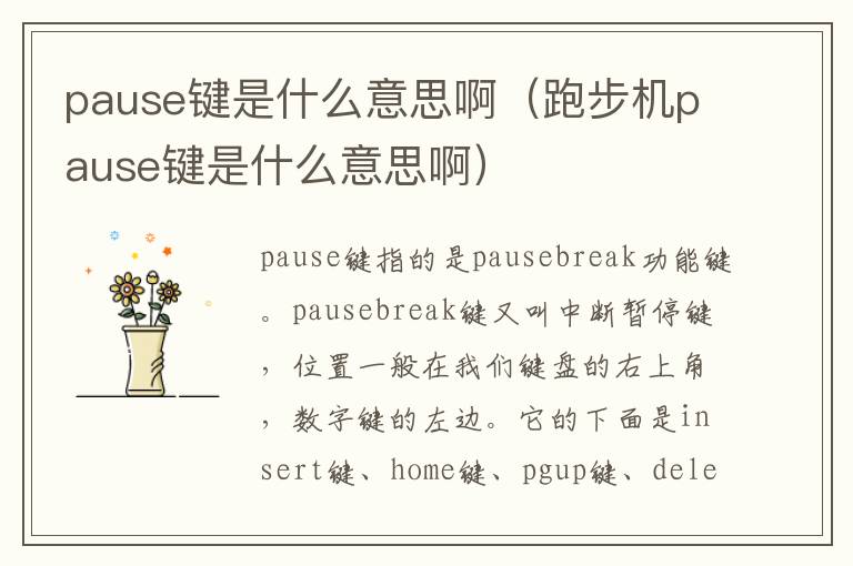pause键指的是pausebreak功能键。pausebreak键又叫中断暂停键,位置一般在我们键盘的右上角,数字键的左边。它的下面是insert键、home键、pgup键、delete键等等,与它相连接的按键有prtscSysRq键、scrolllock键。Pause键可以用于暂时停止某些程序的执行,特别是DOS程序。