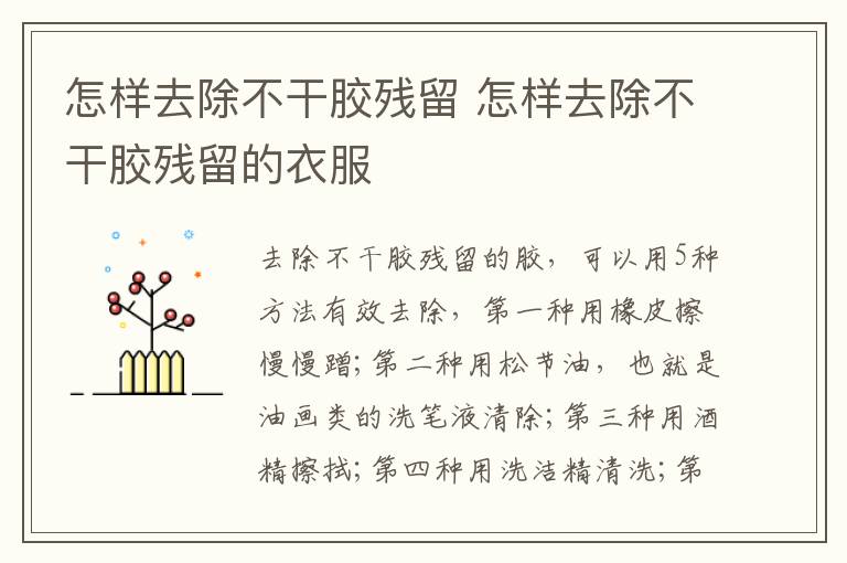 松节油是油画类的洗笔液,只要用面巾纸沾些松节油覆盖到残留胶上面,胶很快就会吸附在面巾纸上,然后用干净的纸一擦,不干胶的残留很快就没了。