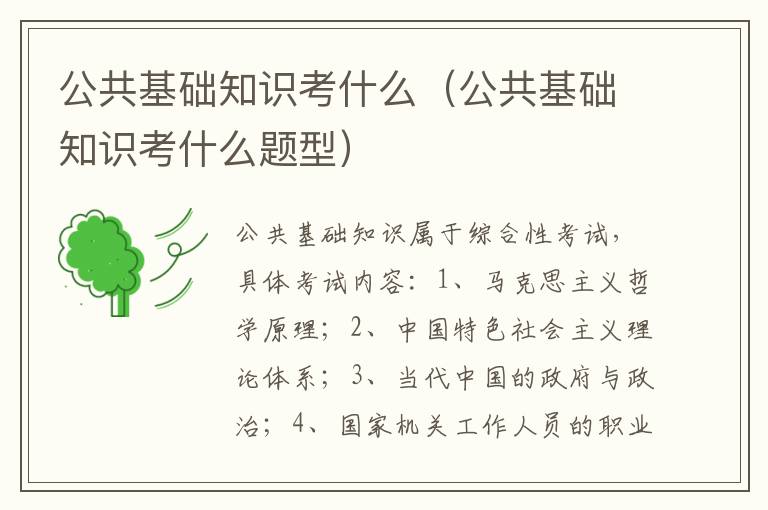关于公基科目的考察要求:主要测试应试人员对公共基础知识的掌握程度和运用知识分析问题、解决实际问题的能力,以及履行公务员义务的必备能力和素质。