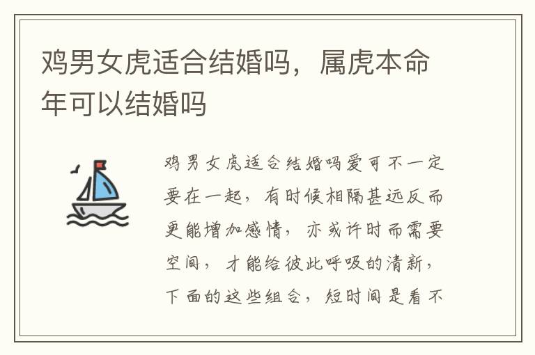 以上就是与鸡男女虎适合结婚吗相关内容,是关于属虎的分享。看完属虎本命年可以结婚吗后,希望这对大家有所帮助!