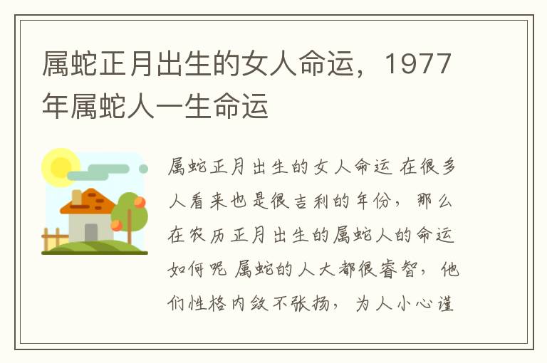 以上就是与属蛇正月出生的女人命运相关内容,是关于生肖的分享。看完1977年属蛇人一生命运后,希望这对大家有所帮助!