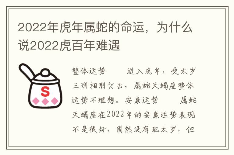 以上就是与2022年虎年属蛇的命运相关内容,是关于星座的分享。看完为什么说2022虎百年难遇后,希望这对大家有所帮助!