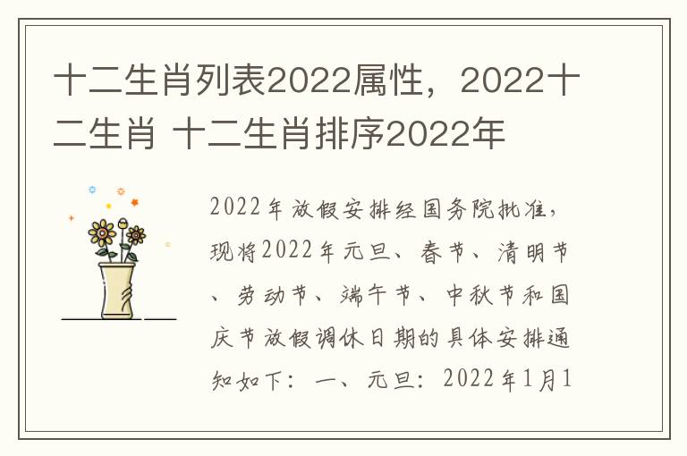 以上就是与十二生肖列表2022属性相关内容,是关于春节放假的分享。看完2022十二生肖后,希望这对大家有所帮助!