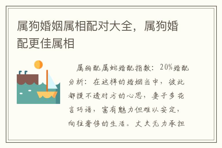 以上就是与属狗婚姻属相配对大全相关内容,是关于婚姻的分享。看完属狗婚配更佳属相后,希望这对大家有所帮助!