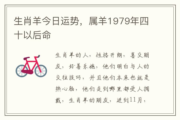 以上就是与生肖羊今日运势相关内容,是关于生肖的分享。看完属羊1979年四十以后命后,希望这对大家有所帮助!