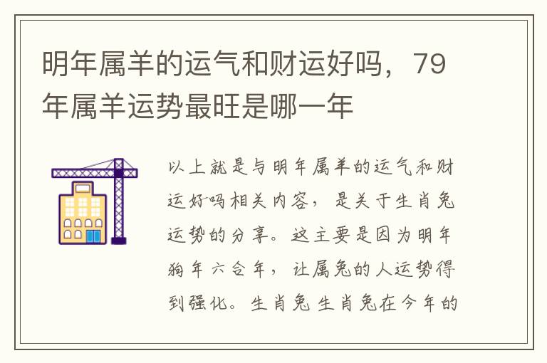 以上就是与明年属羊的运气和财运好吗相关内容,是关于生肖兔运势的分享。看完79年属羊运势最旺是哪一年后,希望这对大家有所帮助!