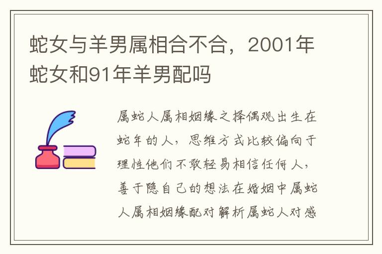以上就是与蛇女与羊男属相合不合相关内容,是关于星座的分享。看完2001年蛇女和91年羊男配吗后,希望这对大家有所帮助!