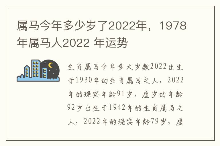 以上就是与属马今年多少岁了2022年相关内容,是关于属马的分享。看完1978年属马人2022 年运势后,希望这对大家有所帮助!