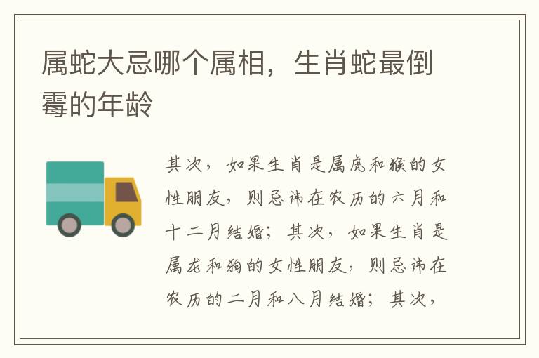 以上就是与属蛇大忌哪个属相相关内容,是关于生肖的分享。看完生肖蛇最倒霉的年龄后,希望这对大家有所帮助!