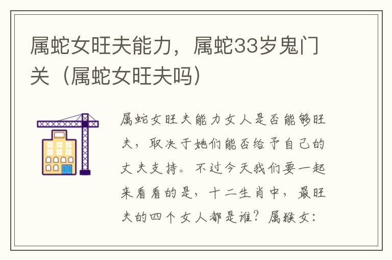 以上就是与属蛇女旺夫能力相关内容,是关于生肖的分享。看完属蛇33岁门关后,希望这对大家有所帮助!