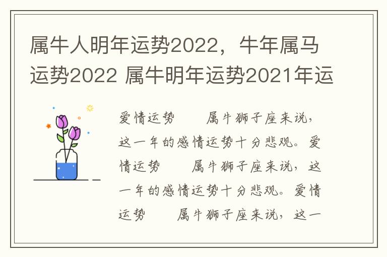 以上就是与属牛人明年运势2022相关内容,是关于星座的分享。看完牛年属马运势2022 年运势后,希望这对大家有所帮助!