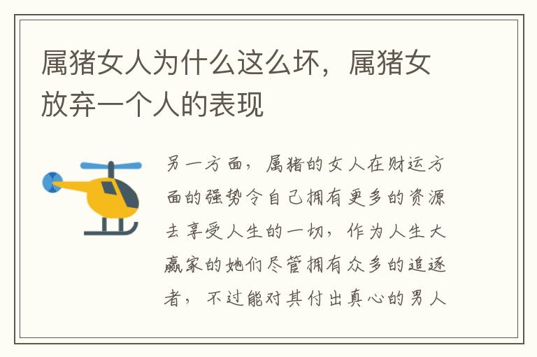 以上就是与属猪女人为什么这么坏相关内容,是关于婚姻的分享。看完属猪女放弃一个人的表现后,希望这对大家有所帮助!