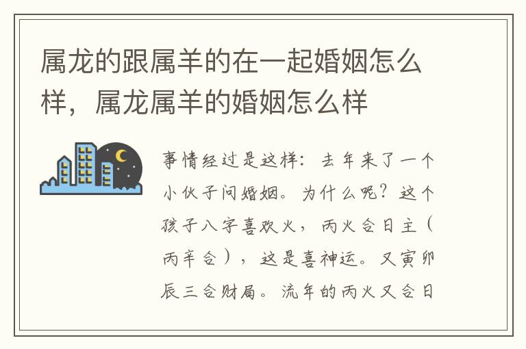 以上就是与属龙的跟属羊的在一起婚姻怎么样相关内容,是关于婚姻的分享。看完属龙属羊的婚姻怎么样后,希望这对大家有所帮助!