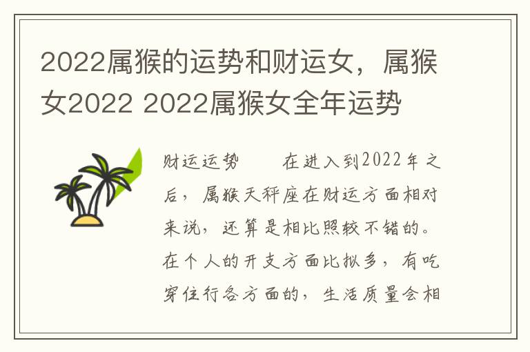 2022属猴的运势和财运女,属猴女2022 2022属猴女全年运势