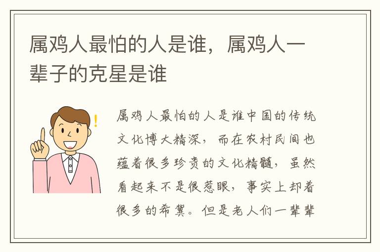 以上就是与属鸡人最怕的人是谁相关内容,是关于生肖的分享。看完属鸡人一辈子的克星是谁后,希望这对大家有所帮助!