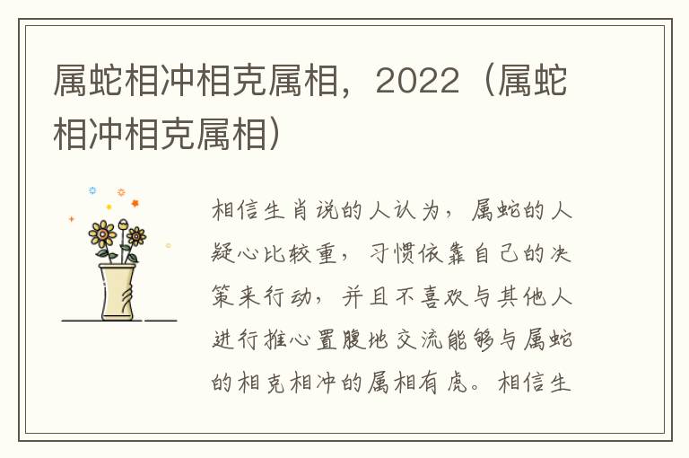 以上就是与属蛇相冲相克属相相关内容,是关于生肖的分享。看完2022 年属蛇的贵人后,希望这对大家有所帮助!