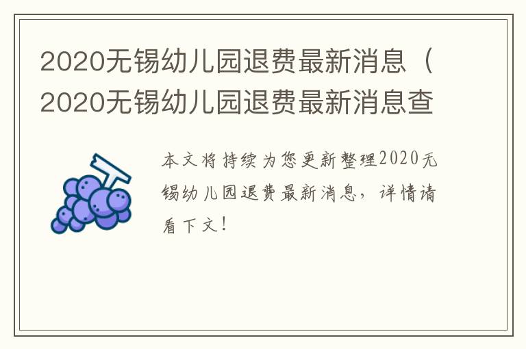 2020无锡幼儿园退费最新消息(持续更新)