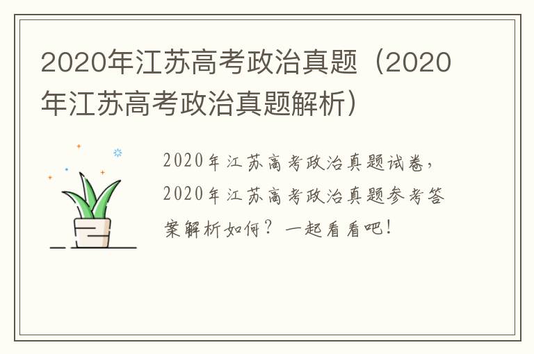 2020年江苏高考政治试题+参考答案: