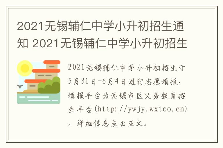 根据《2021年无锡市区义务教育招生入学工作意见》文件精神,我校将开始2021年新初一招生工作,现将有关事宜通告如下:
