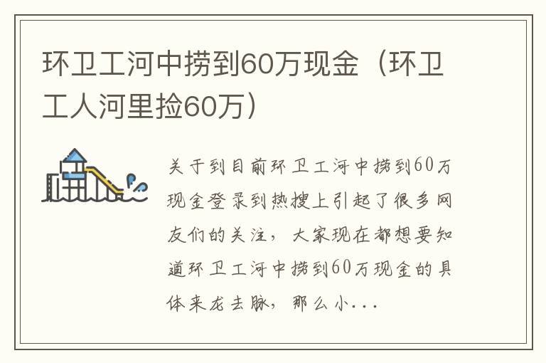 以上就是【环卫工河中捞到60万现金】相关内容,更多资讯请关注唯象娱乐网。