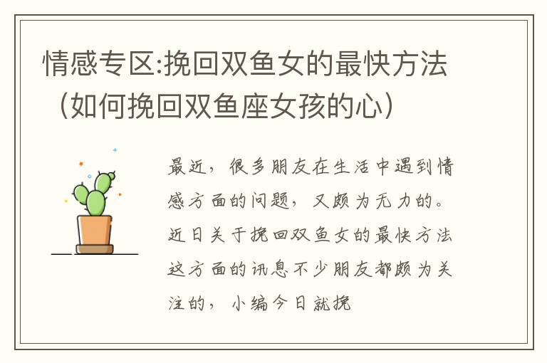 以上就是关于挽回双鱼女的最快方法的一些讯息,小编祝愿每个人都能拥有自己的小幸福。
