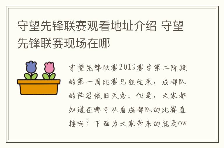 守望先锋联赛2019赛季第二阶段的第一周比赛已经结束,成都队的阵容依旧天秀。但是,大家都知道在哪可以看成都队的比赛直播吗?下面为大家带来的就是owl的比赛观看地址,一起来看看吧。