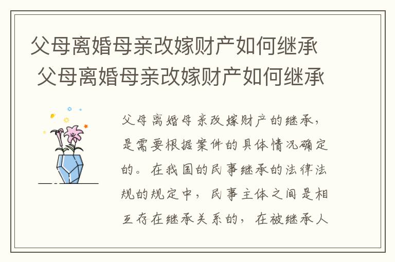 一、父母离婚母亲改嫁财产如何继承?