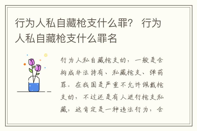 本罪侵犯的客体是公共安全和国家对枪支、弹药的管理制度。国家禁止任何个人非法持有、私藏枪支、弹药。《中华人民共和国枪支管理法》明确规定,任何单位或个人非法持有、私藏枪支,都是违法犯罪行为。由于枪支、弹药一旦失控,就可能成为犯罪分子的作案工具,被一些犯罪分子用来实施杀人、抢劫、绑架等违法犯罪活动。