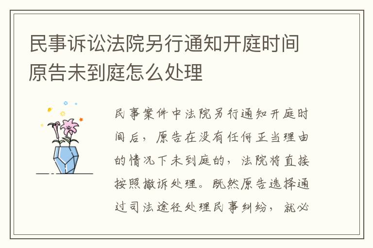 一、民事诉讼法院另行通知开庭时间原告未到庭怎么处理?