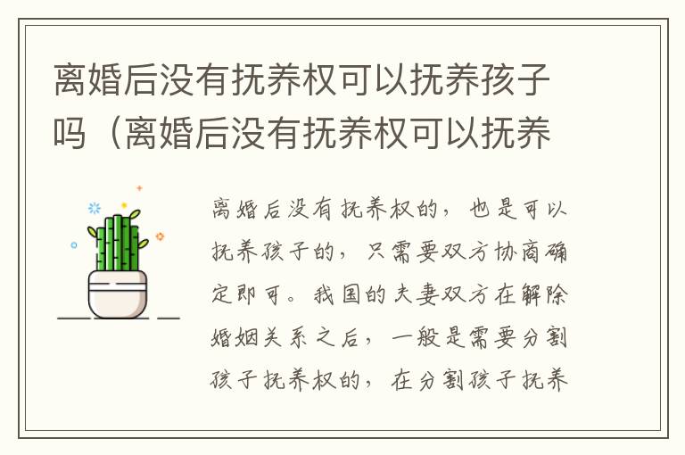 离婚后没有抚养权也有探望子女的权利。《民法典》第一千零八十六条规定:离婚后,不直接抚养子女的父或者母,有探望子女的权利,另一方有协助的义务。行使探望权利的方式、时间由当事人协议;协议不成的,由人民法院判决。父或者母探望子女,不利于子女身心健康的,由人民法院依法中止探望;中止的事由消失后,应当恢复探望。